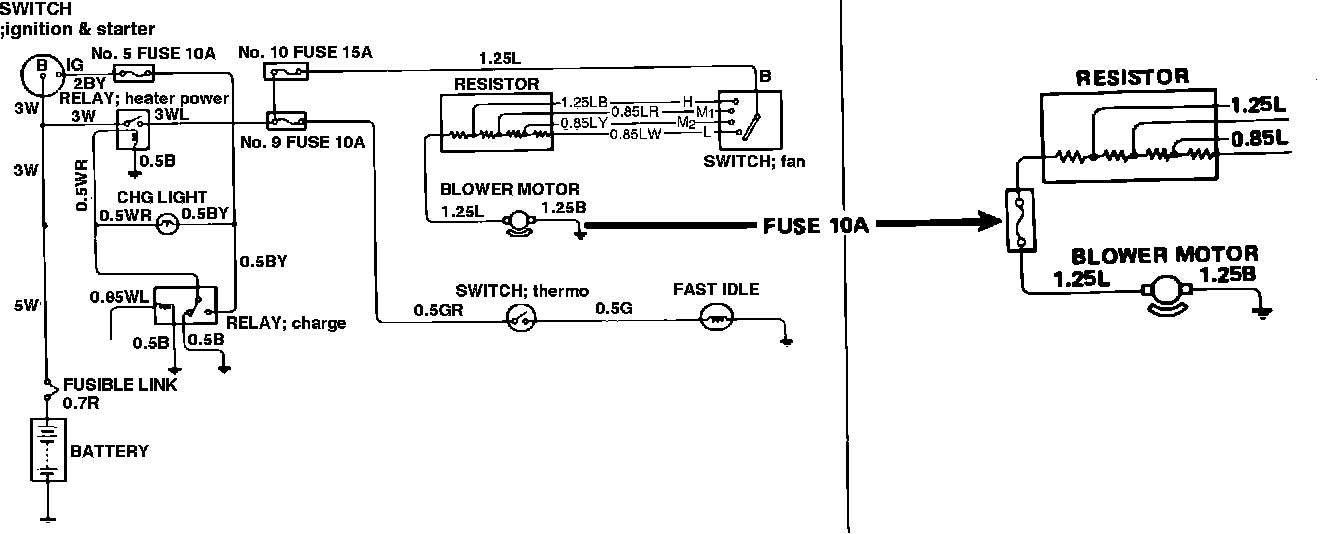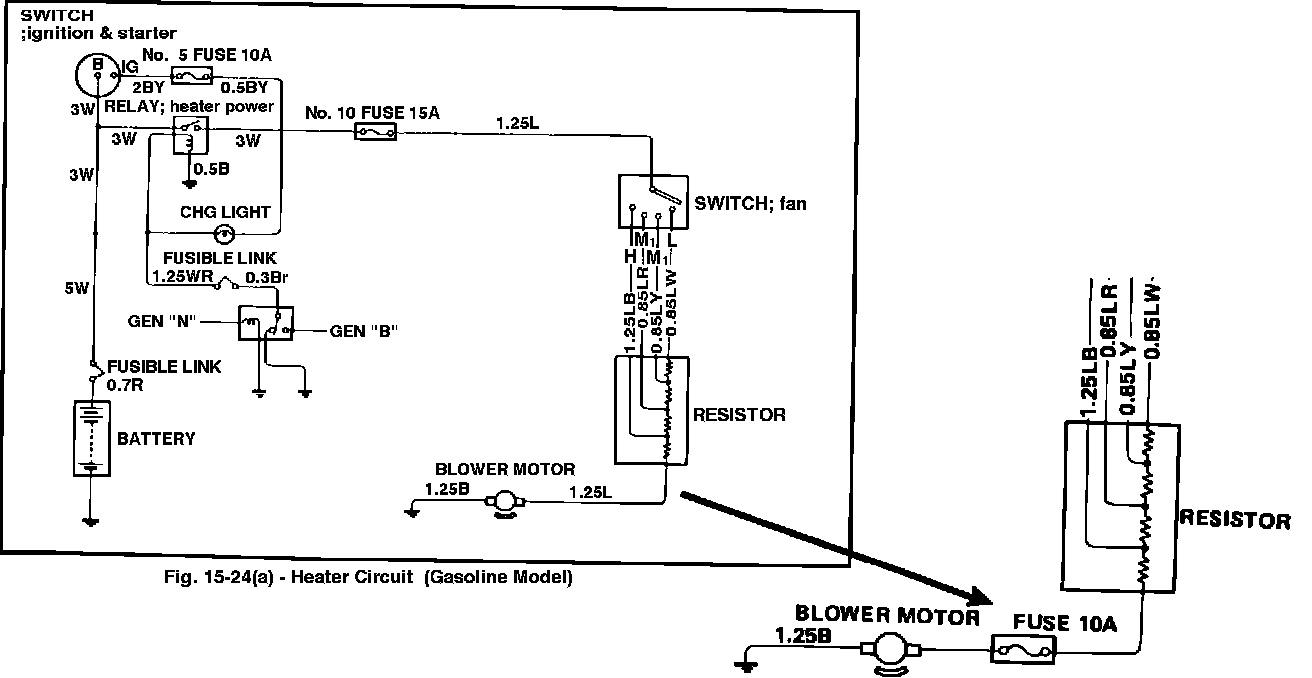 An in-line fuse has been installed between the heater blower motor and blower motor resistors on all models. Figure 15-24(a) should be changed to show the inline fuse: