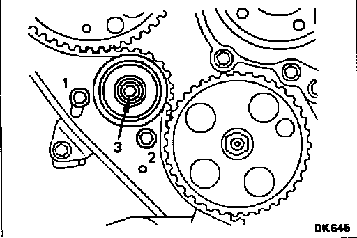 10. Loosen tensioner pulleys and plate bolts. Tighten the bolts in numerical sequence 1, 2, and 3.