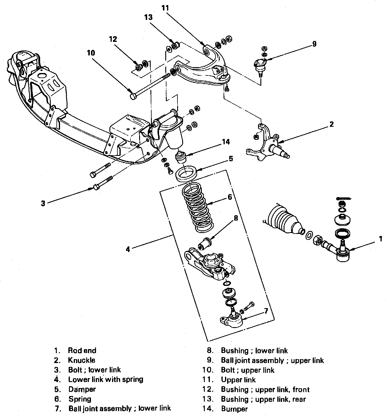 h. Remove lower link bolt D, Fig. 6, then remove coil spring together with lower link A.