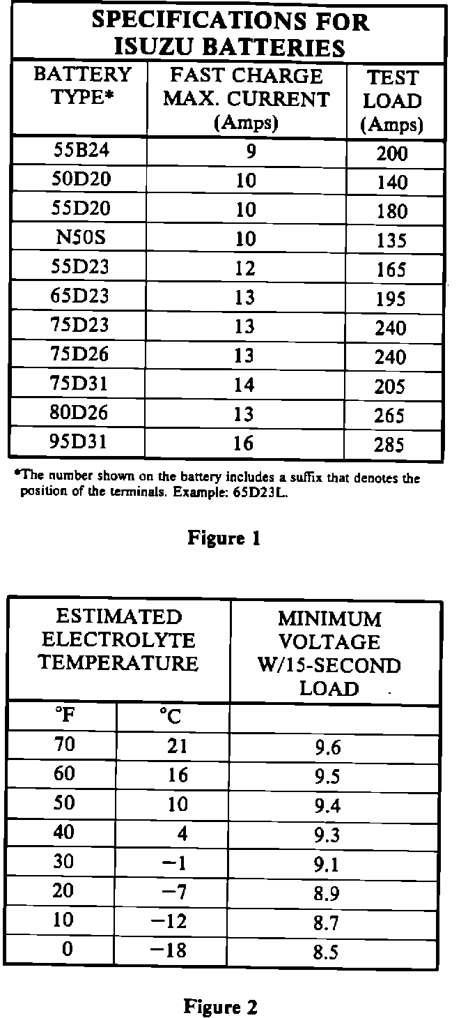 2. Determine fast charge amperage (Figure 1). Fast charge battery for 30 minutes at amperage rate no higher than specified in Figure 1. Take voltage reading after charge.