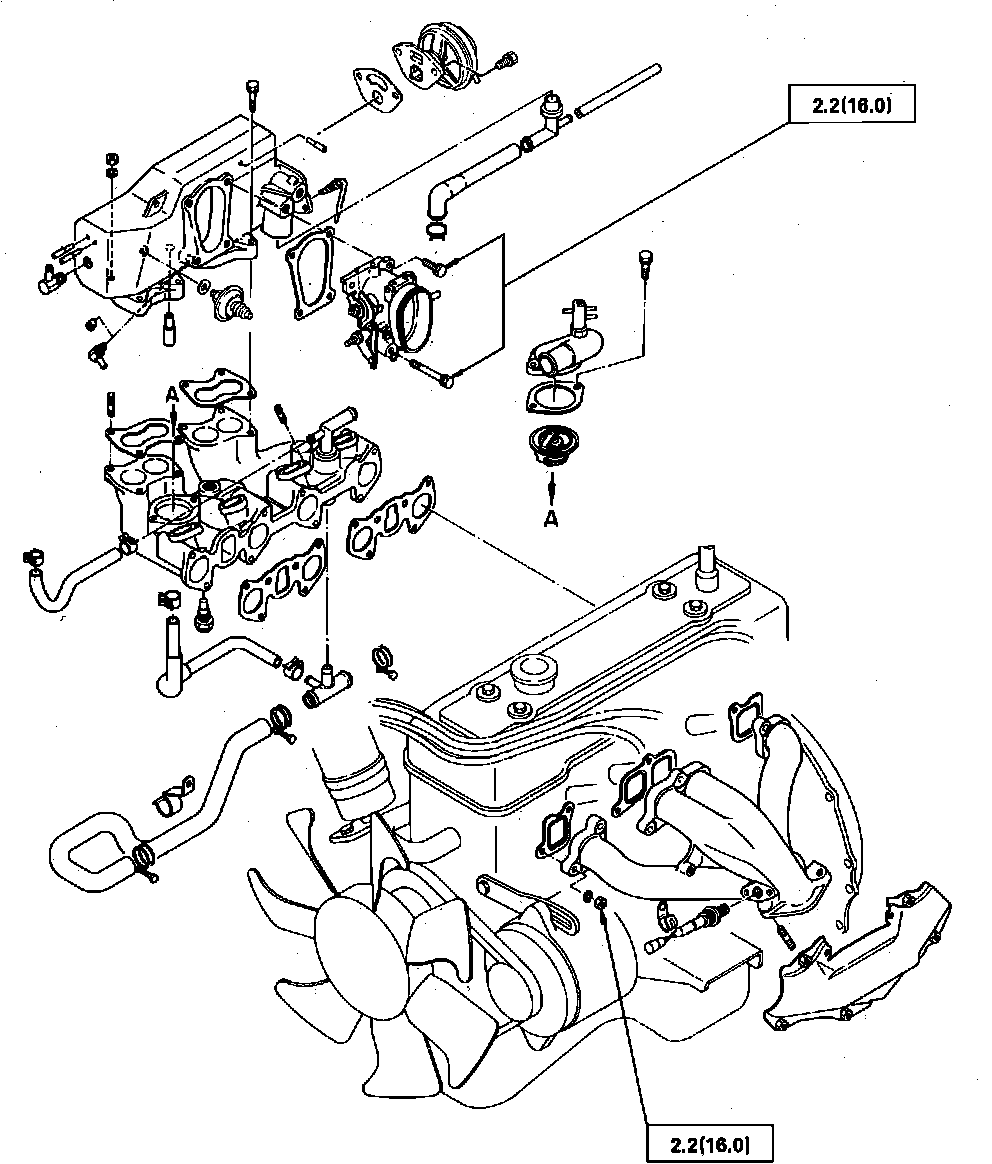 Fig. 1 Removal & installation of intake & exhaust manifolds. Models w/fuel injection: