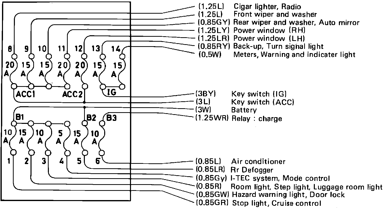 Fig. 9 Fuse Panel (Main). Less Turbocharger: