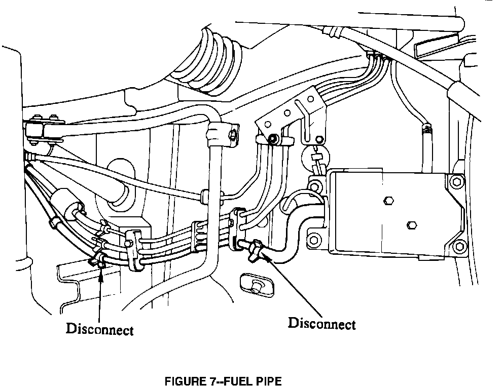 11. Remove the fuel pipe between the vehicle fuel tank and the rear of the fuel pump (Figure 7); discard this pipe.