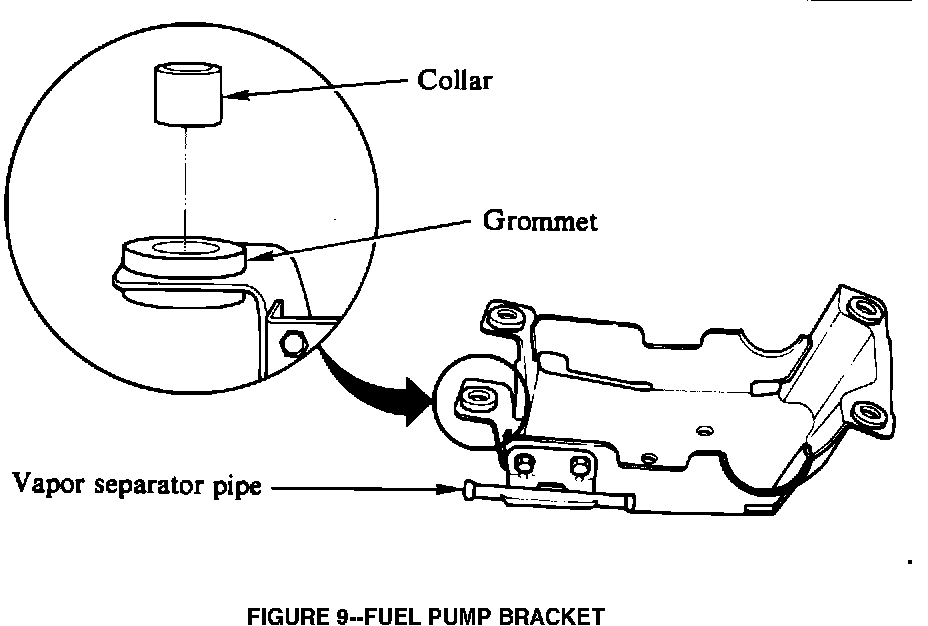 15. Remove the rubber mounting grommets from the fuel pump bracket and transfer them to the new main fuel pump bracket (part No. 8-94430-366-0). See Figure 9.