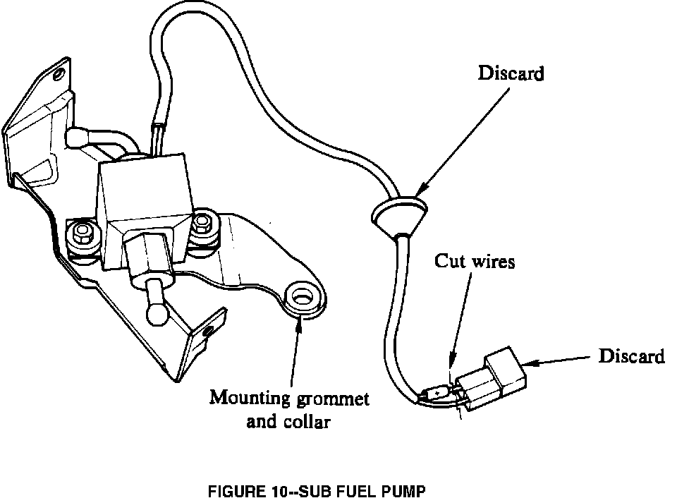 2 bolts part No. 9-01900-625-0 and plain washers part No. 8-94233-657-0. If the sub fuel pump has a connector and grommet on the end of its wiring harness (Figure 10), cut the wires and remove the grommet.