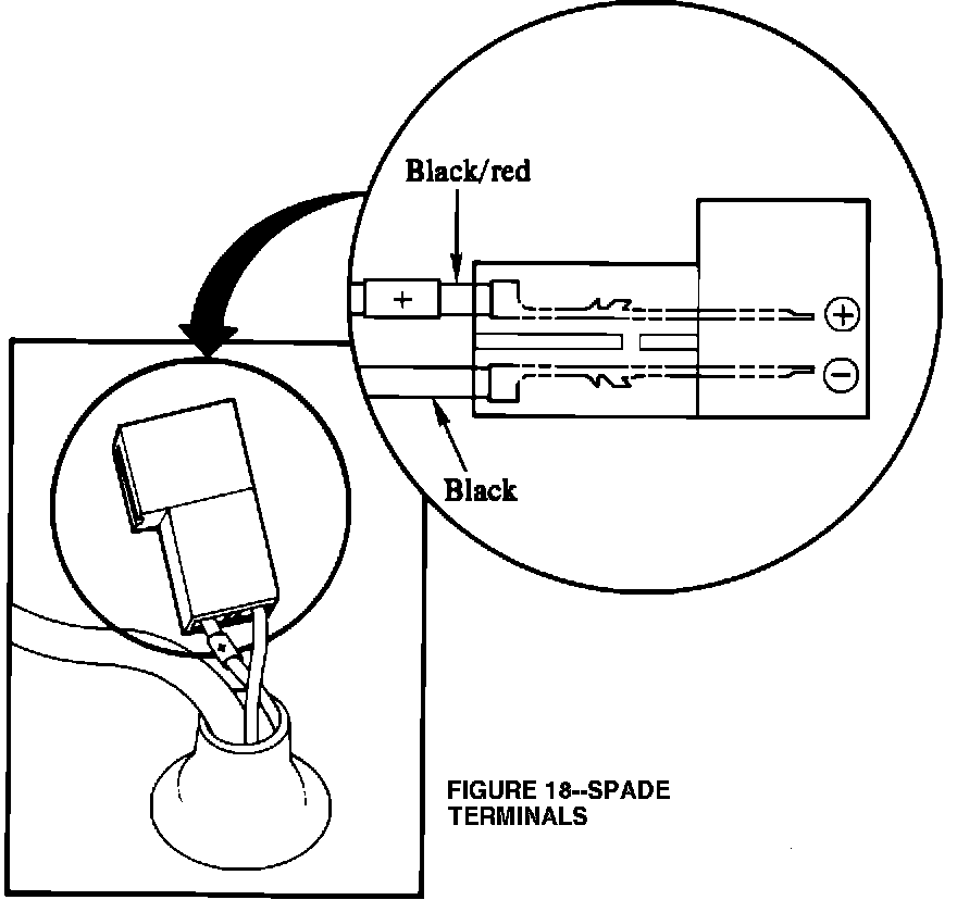 30. Install the spade terminals into connector part No. 8-94124-739-0. Note the polarity shown in Figure 18.