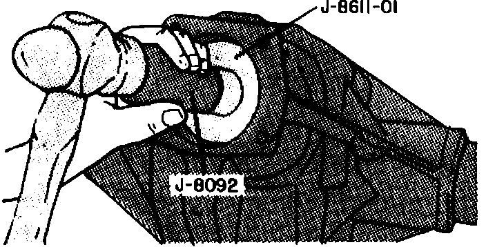 1. Install front pinion bearing outer race using installer J-8611-01 and driver handle J-8092, Fig. 3.