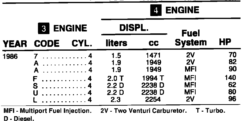 Fig. 5 Engine Identification - 1986: