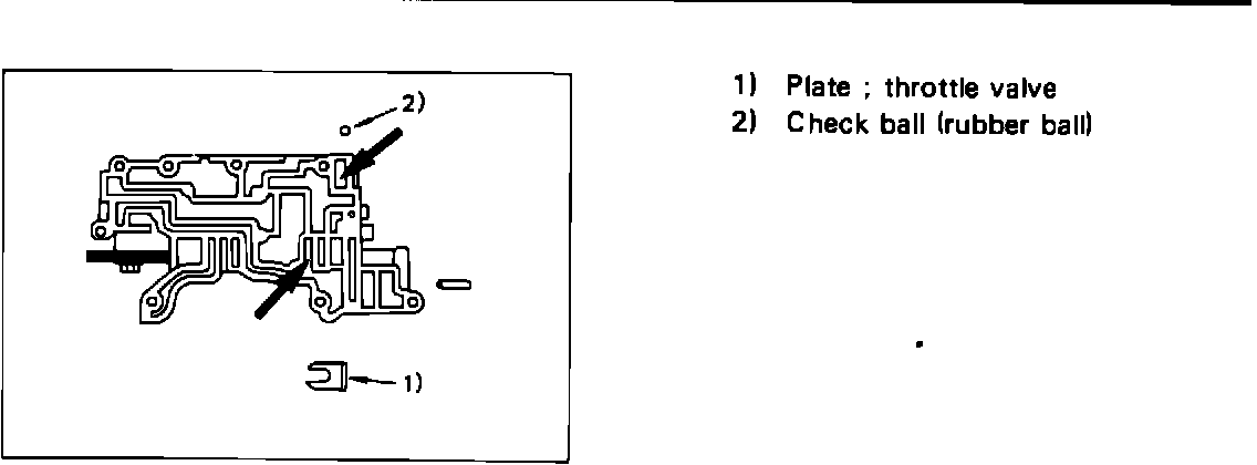 All editions of the Impulse (JR) Workshop Manual show incorrect placement of the throttle valve plate during valve body assembly. The correct placement is shown below. Mark the following pages in all copies of the Impulse (JR) Workshop Manual to indicate "See Service Bulletin SB86-05-004 for correct installation."