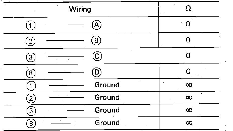 Fig. 72 Fuel injector circuit resistance value chart.:
