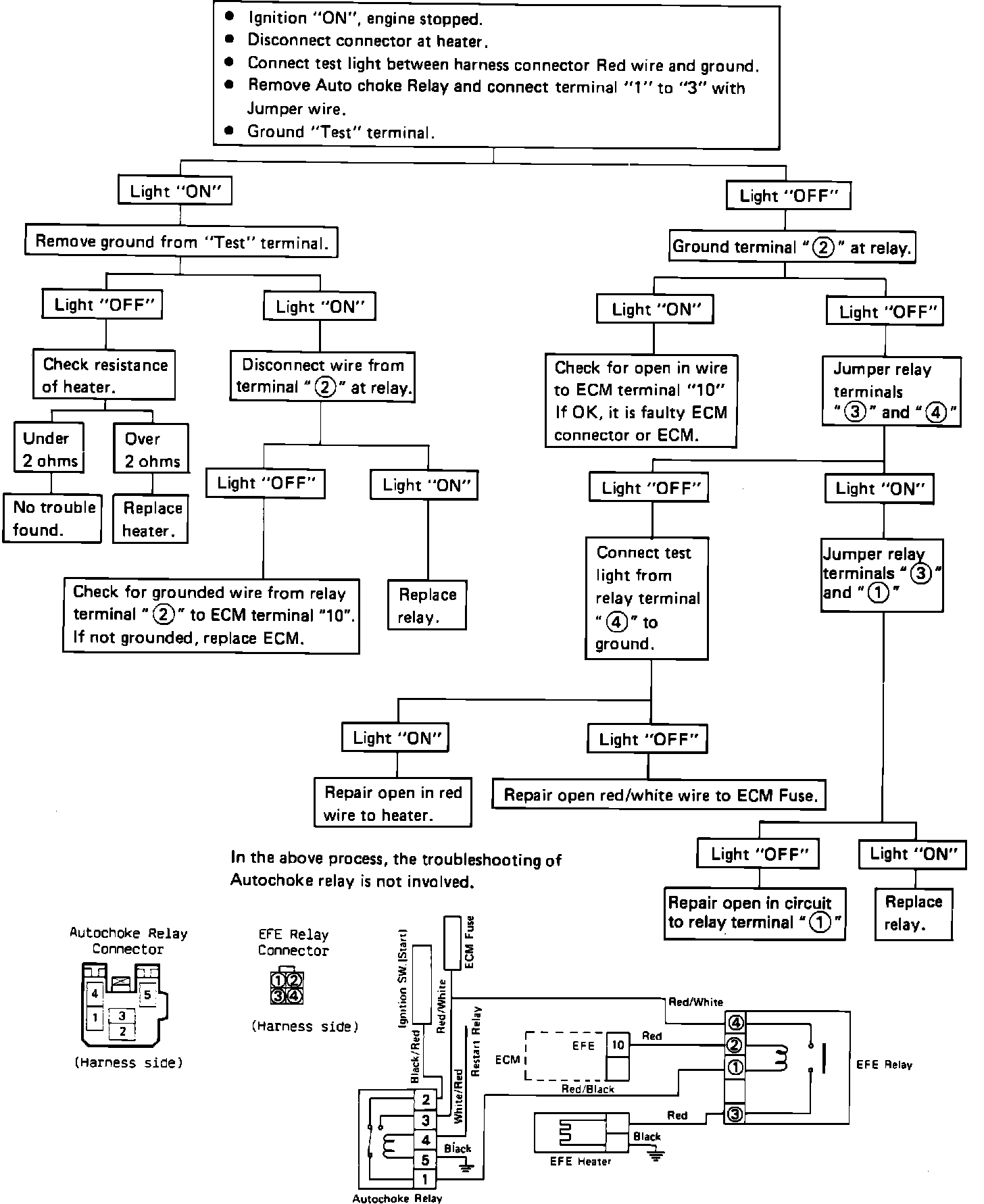 EFE System Operational Check Chart:
