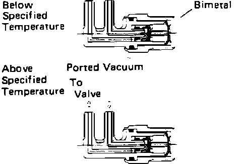A thermal vacuum valve is used in line to the purge control valve. It prevents vacuum from being applied until the engine reaches the minimum operating temperature for canister purging. The thermal vacuum valve reaches into the coolant stream to measure the coolant temperature. When cold (below 165 degrees F), the valve is closed. The valve opens only at higher temperatures, insuring proper operating conditions for effective purging of the charcoal canister and adequate combustion of the purged fuel vapors.