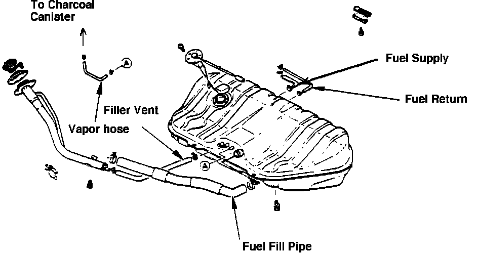 The fuel tank incorporates a vent tube that opens inside the tank, near the top so as to help prevent liquid fuel from entering the vapor recovery system and saturating the charcoal canister with fuel.