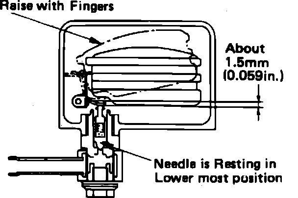 Adjust float level by bending the float seat. Check needle valve stroke by inverting carburetor and fully raising float with fingers, Fig. 76. If needle valve stroke is not as specified, adjust by bending float stopper.