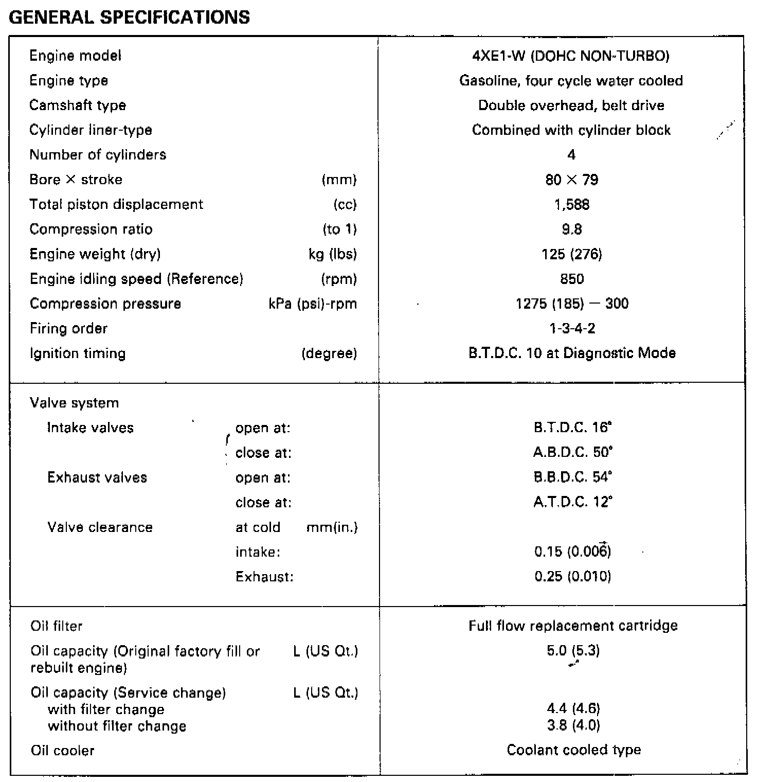 Impulse Coupe L4-1588cc 1.6L DOHC (4XE1-W)
