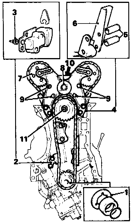 NOTE: If the timing chains or sprockets show signs of excessive wear or are damaged in any way, all sprockets and the chains should be renewed.