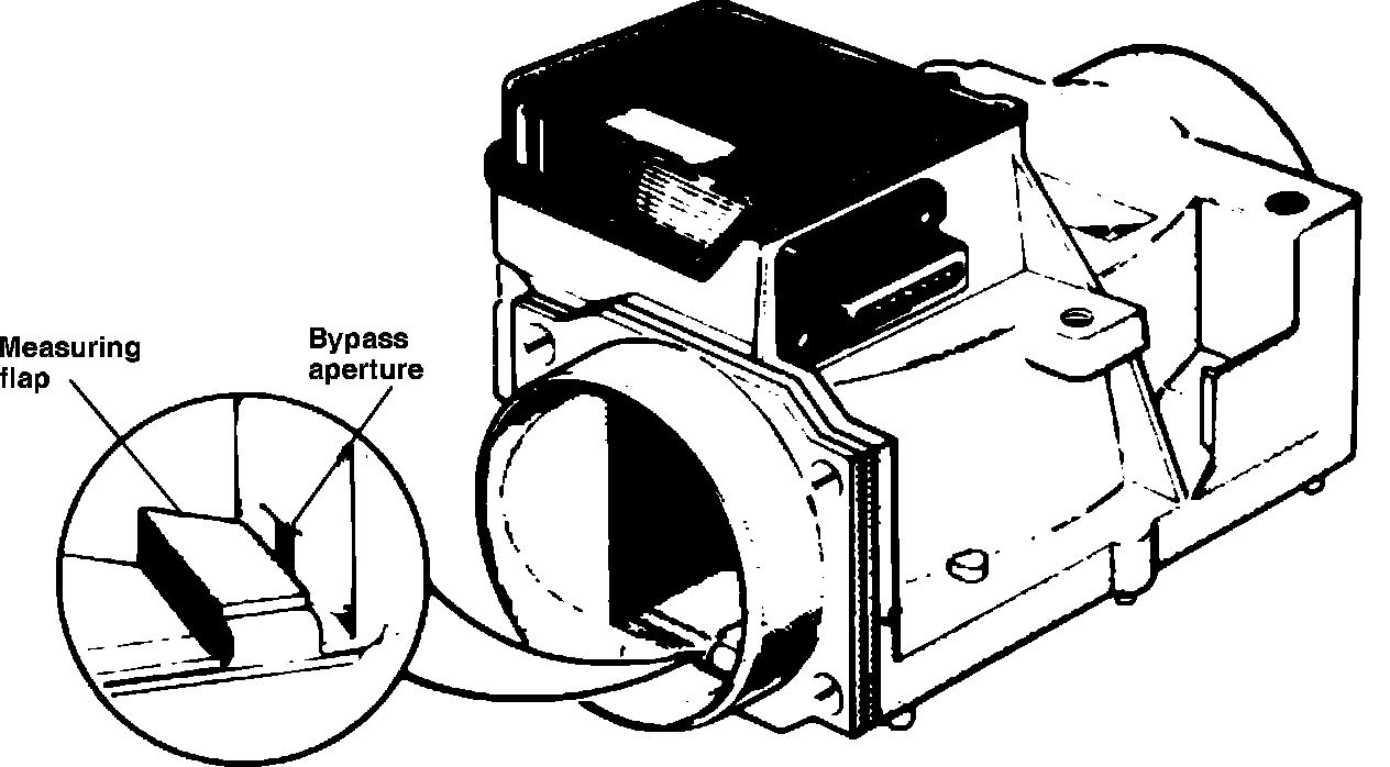 The air flow meter, Fig. 2, measures the quantity of intake air, and sends a signal to the control unit so the base pulse width can be determined for correct fuel injection.