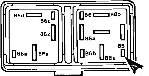 The main relay switches the supply to the ECU and is internally polarity-protected as a safeguard to the ECU. The pump relay, which is controlled by the ECU, switches the supply to the fuel pump.