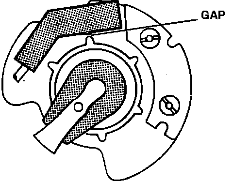 The distributor incorporates a standard centrifugal advance system, anti-flash shield, rotor arm, and distributor cap. The distributor incorporates a reluctor and pick-up module. The reluctor is a gear-like component, with one tooth per cylinder, and is mounted on the distributor shaft.