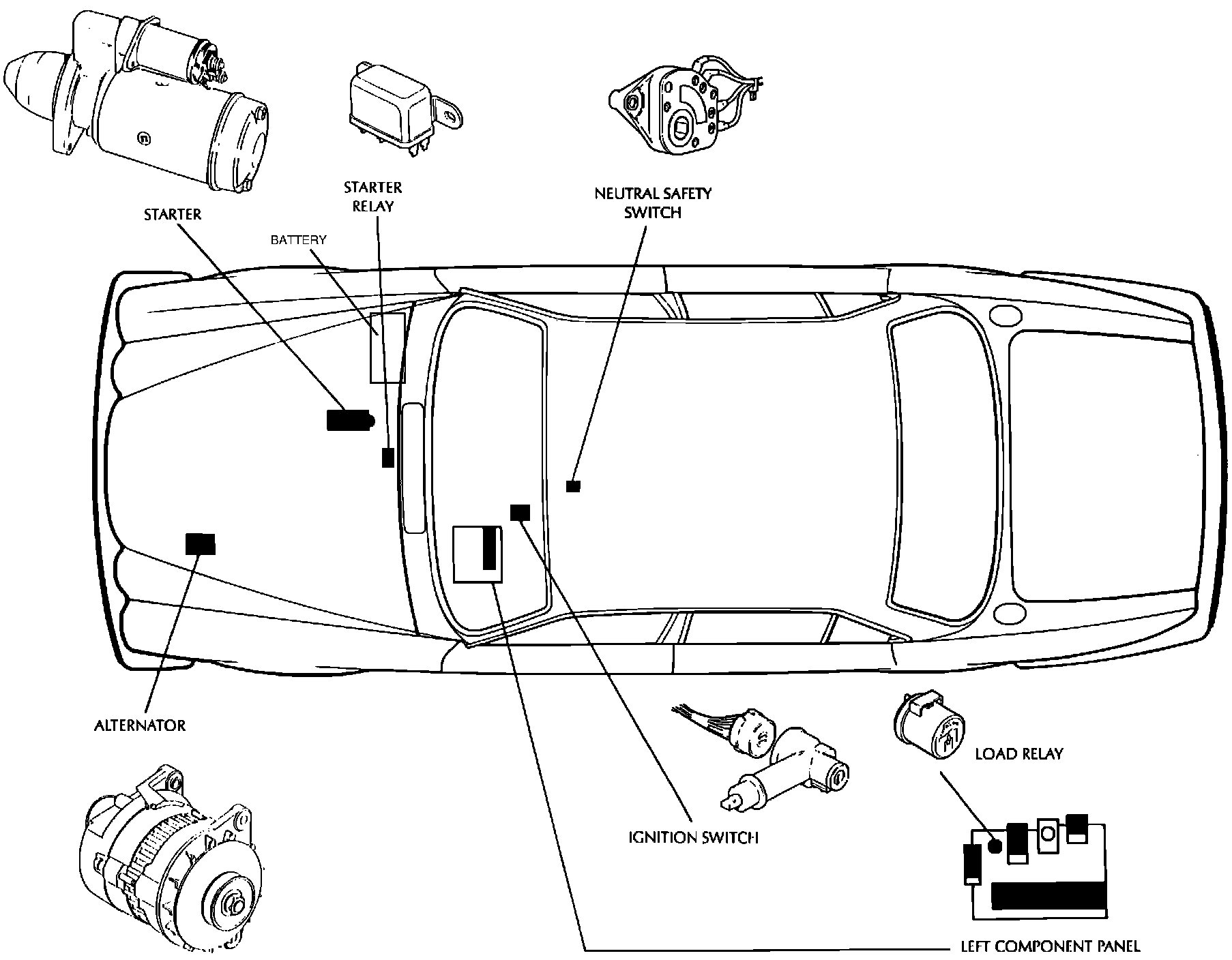 Battery, Starter, Alternator Component Locations: