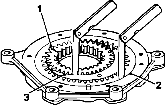 - Refit the driven gear and check the radial clearance between the gear and housing (2).