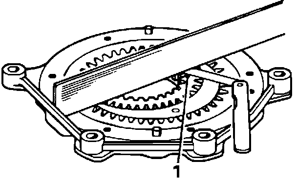 - Mark the drive gear/driven gear relationship (1) to be sure of correct reassembly.