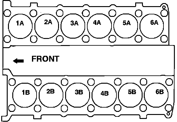 Cylinders numbered from front. As viewed from rear of vehicle, "A" is right bank and "B" is left bank.
