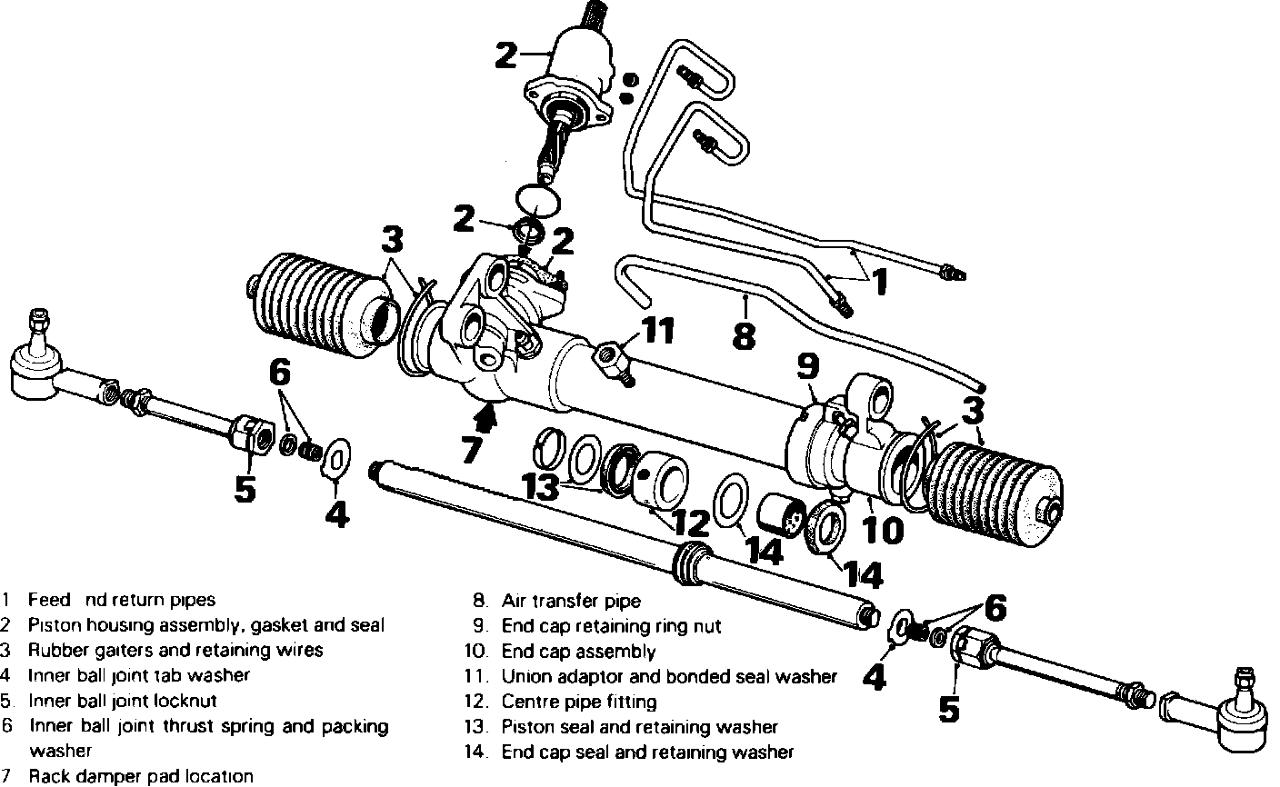 b. Remove hose clips securing outer ends of boots to tie rods.