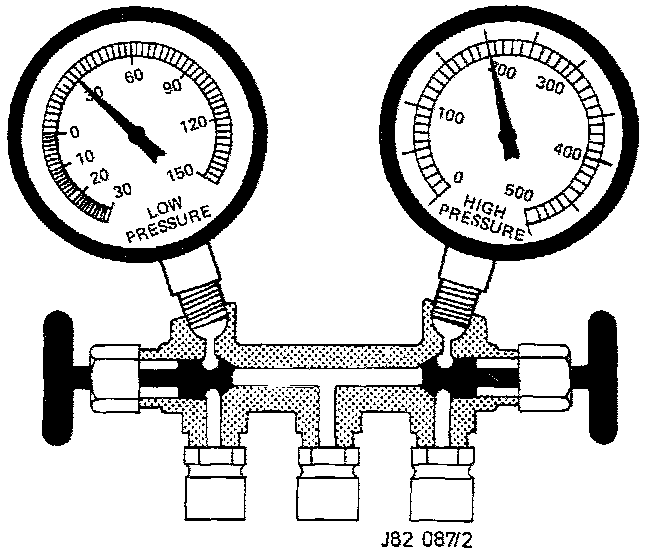 - The high side gauge reading is slightly high (or slightly lower especially if a large fan is used to substitute ram air).