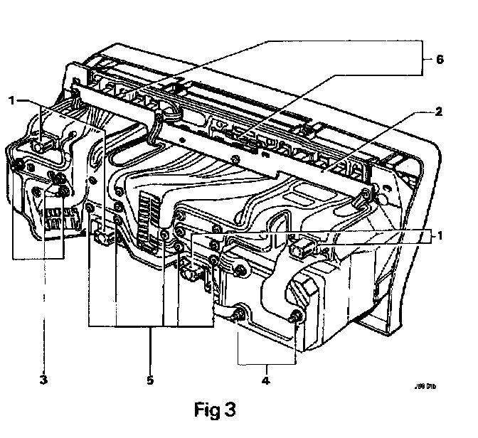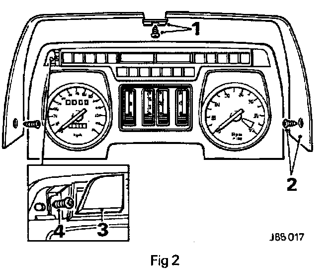 Remove the centre securing strip and screw from instrument panel surround (1 Fig 2).