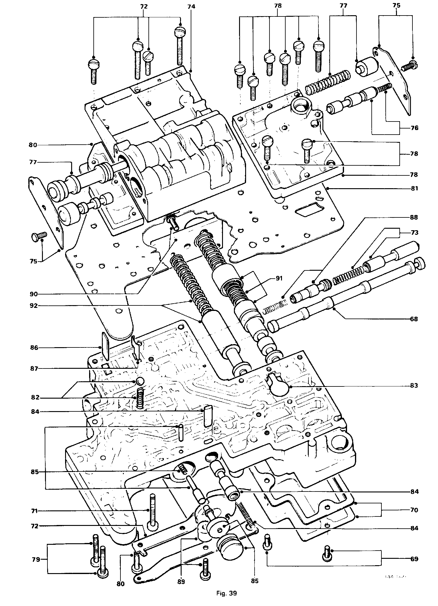 71. Remove the six upper valve body securing screws from the lower valve body (Fig. 39).