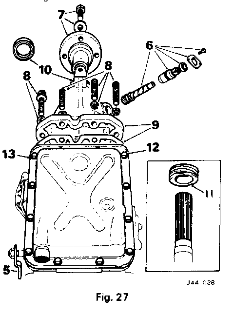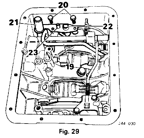 6. Remove the speedometer driven gear housing together with the driven gear. remove and discard the "O" ring (Fig 27).