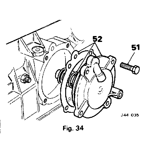 52. Withdraw the front servo, operating rod and spring, remove and discard the gasket (Fig. 34).
