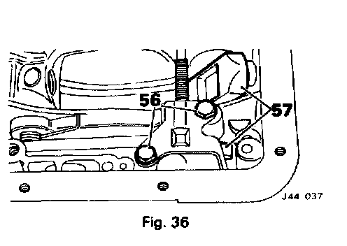 57. Withdraw the pivot pin and rear servo operating lever (Fig. 36).