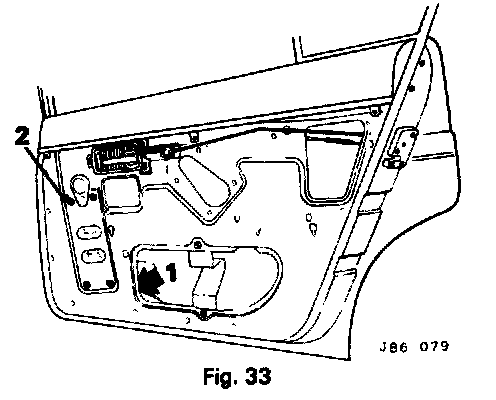- Remove the four pan-headed setscrews and detach the regulator mechanism from the door panel (2, Fig. 33).