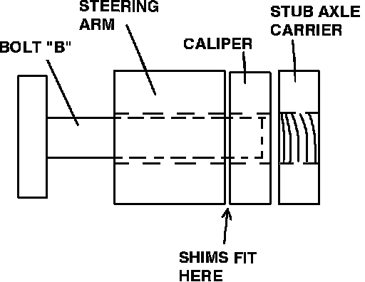 NOTE: Before removing caliper bolts, be aware that there may be shims fitted to the lower caliper mounting bolt, between the caliper and the steering arm. Remove the bolts carefully and note the position and number of shims. It will change the wheel alignment if shims are not refitted to correct position.