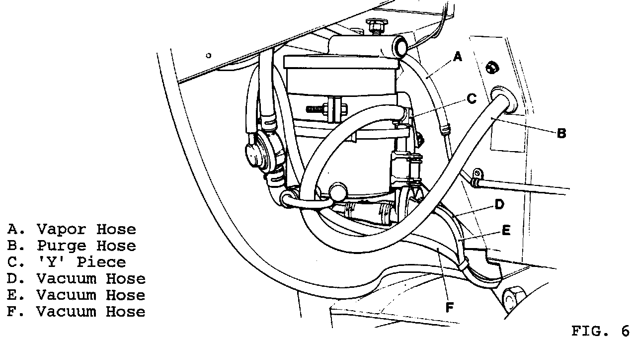 15. Route vacuum hoses previously pushed into the engine compartment (D, E & F Fig. 6) along the left side of the engine compartment and allow them to rest on the left fender (until further instruction is given).