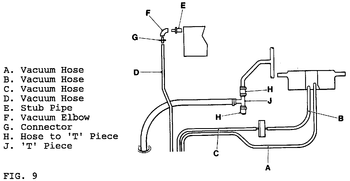 14. Connect vacuum hoses (D, E & F, Fig. 6) and route as shown (Fig. 6). Secure together using tie wraps.