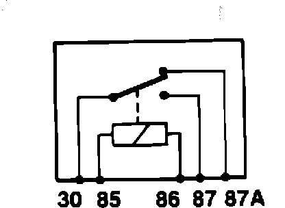 1. Change Over Relay (C/O). This is a green relay (DBC 2483) with two output terminals, 87 and 87A (Fig. 1). Relay switch rests on contact 87A, and when activated changes to terminal 87 (Fig. 1).
