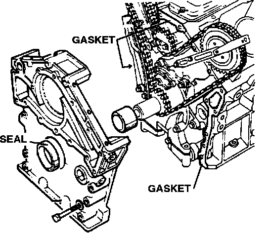 - Refit the timing cover to the engine, using a new gasket. Be sure the oil seal is not damaged or distorted.