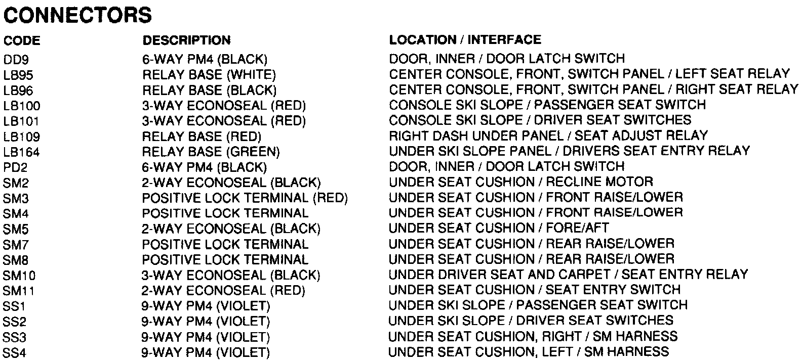 Power Seats - Components, Connectors, & Grounds: