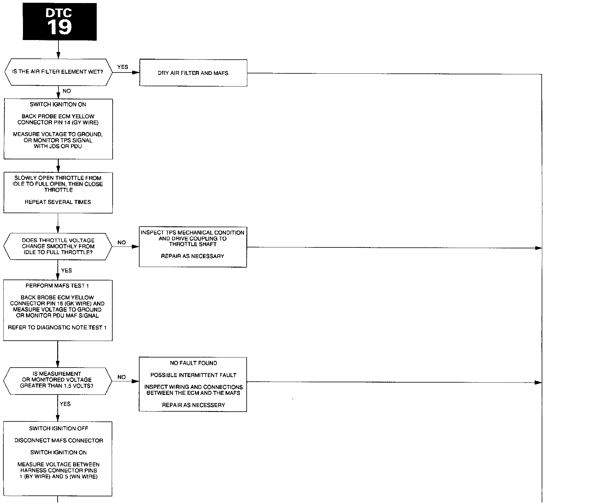 THROTTLE POSITION SENSOR AND MASS AIR FLOW SENSOR - DTC 19 (LOW THROTTLE POS. VOLTAGE; HIGH AIR FLOW VOLTAGE)