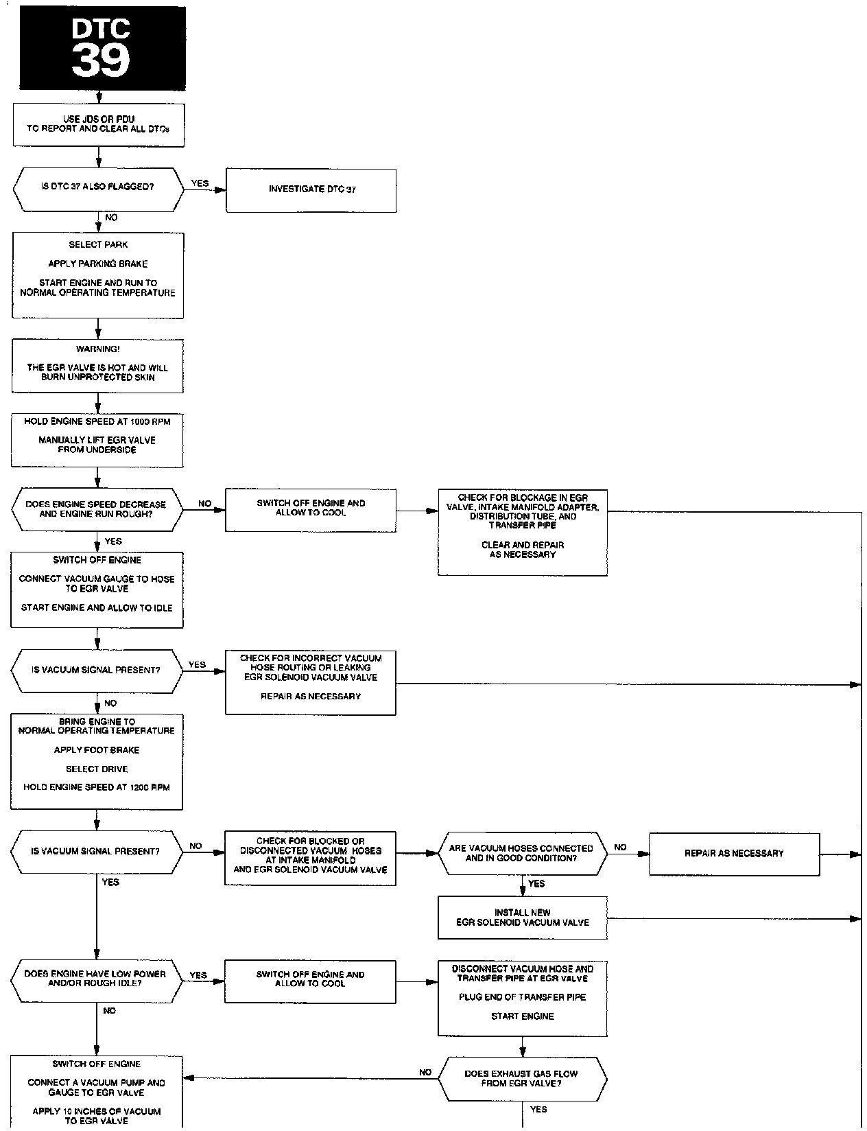 The ECM will flag DTC 39 if the EGR temperature signal is outside a limit (higher or lower) when EGR is enabled or disabled.