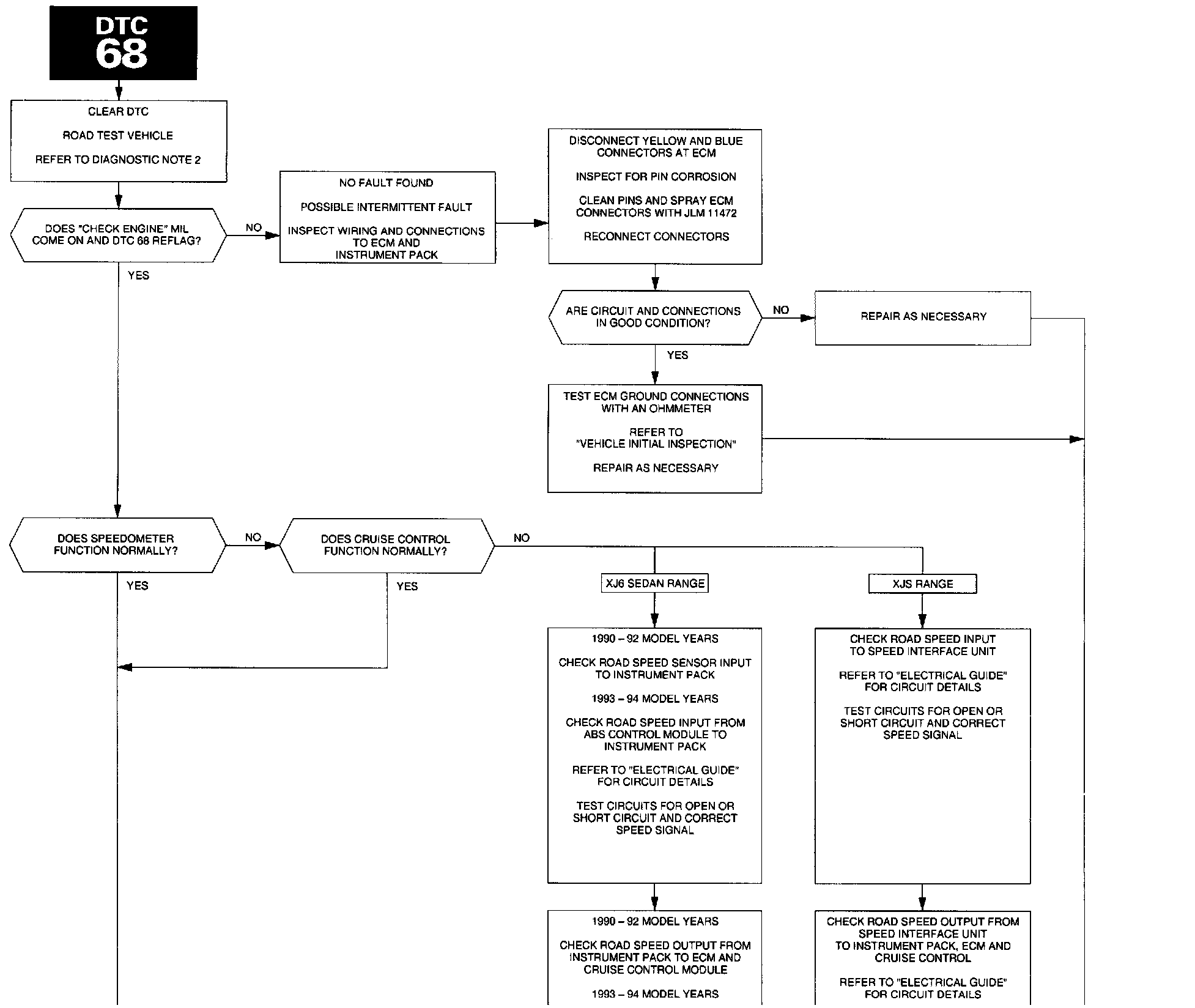 - 1990 - 92 MY XJ6 Sedan Range & XJS vehicles - Defective road speed sensor, or short circuit or open circuit between road speed sensor and instrument pack.