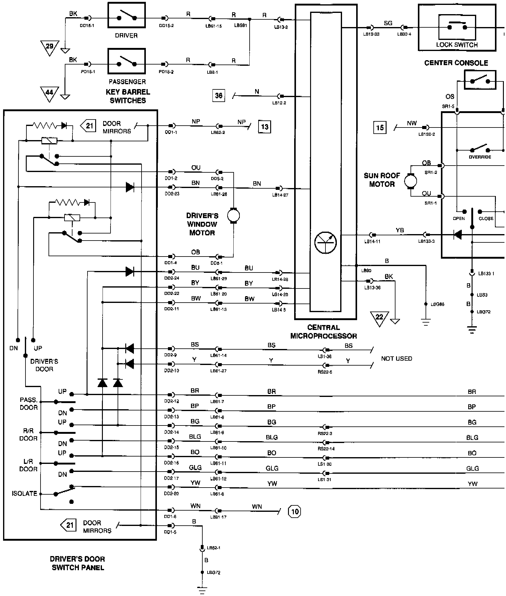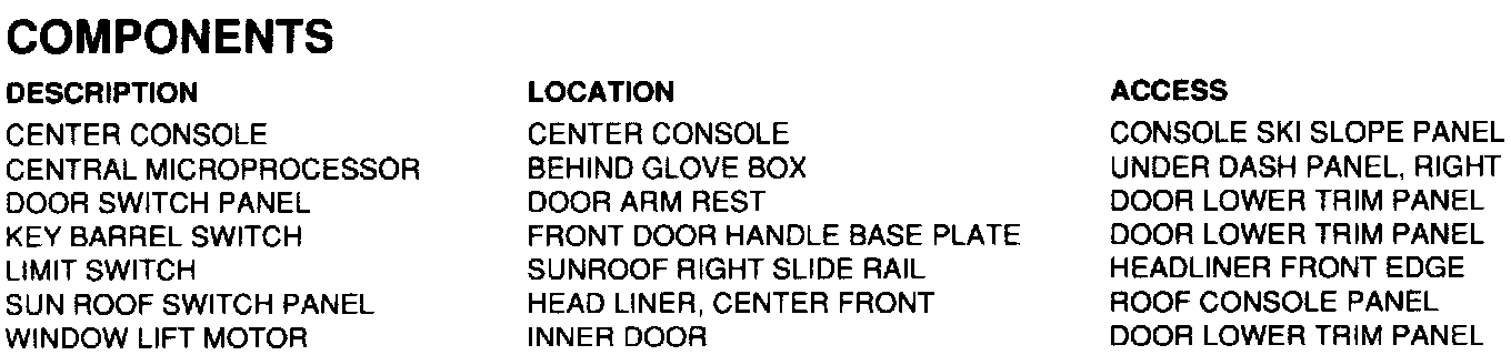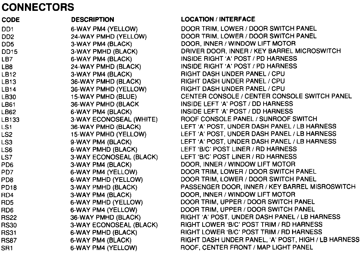 Powered Windows & Sun Roof - Components, Connectors, Grounds, & Inputs/Outputs: