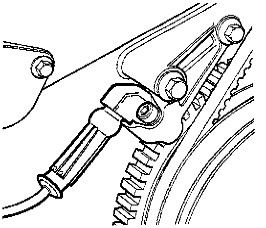 The crankshaft sensor provides both engine speed and crankshaft position signals to the ECM. The sensor is a variable reluctance device, consisting of a bobbin coil with a magnetic core. The resistance of the coil is approximately 1.35 kilo ohms. The steel teeth on the crankshaft timing ring are used as a rotor. As the rotor teeth pass by the crankshaft sensor, pulses are generated.