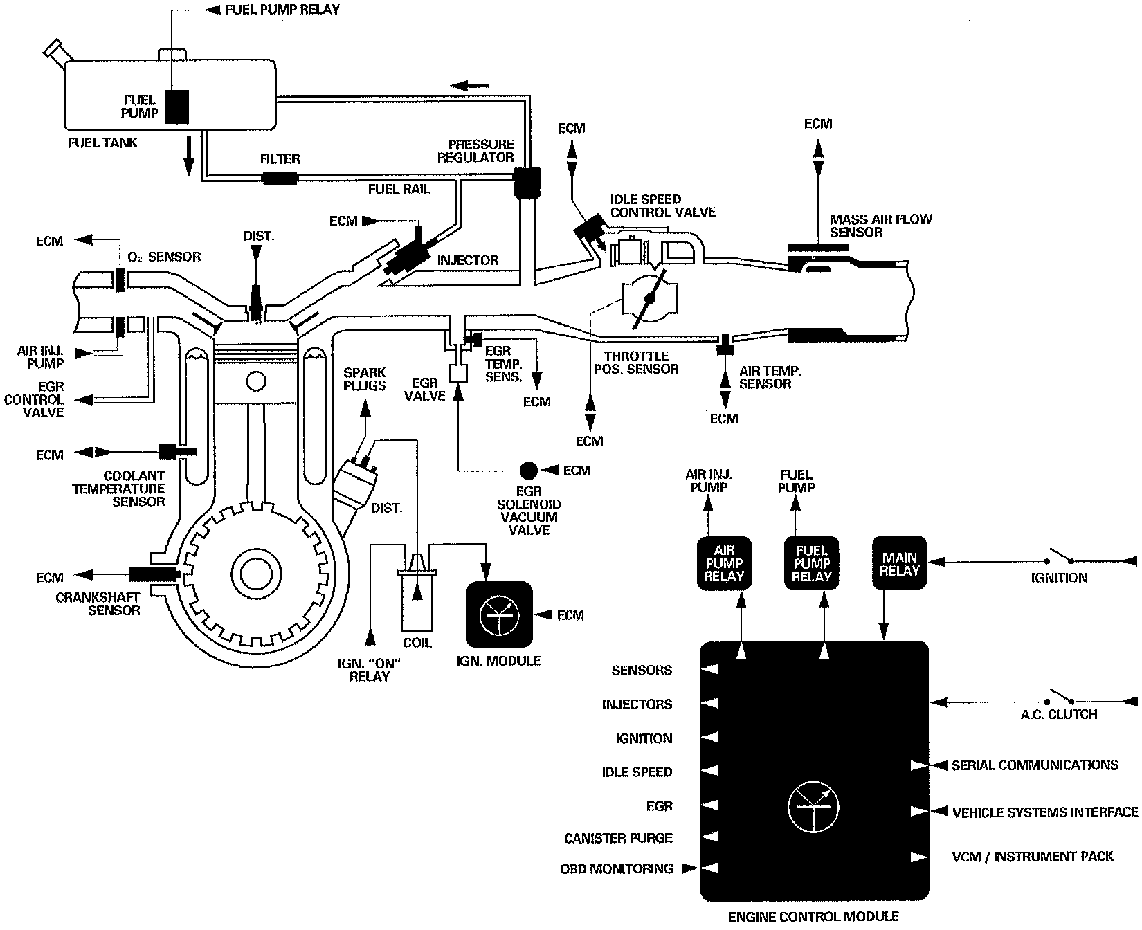 The system maintains optimum performance over the engine operating range by precisely controlling fuel injection, ignition timing and emission control functions. In addition, the ECM provides various interface outputs and incorporates an on-board diagnostic function.