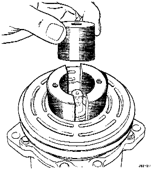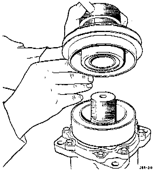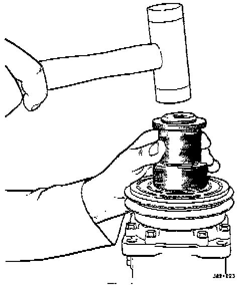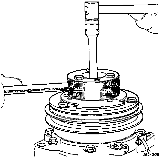 5. With a hammer, tap the end of the driver while guiding the rotor to prevent binding. Tap until the rotor bottoms against the compressor front housing hub, Listen for a distinct change of sound during the tapping process.