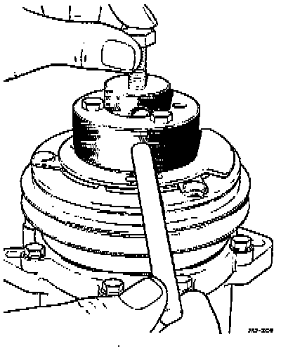 NOTE: The air gap is determined by the spacer shims. When fitting a new clutch assembly, try the original shims first. Add or subtract shims if the air gap does not meet the specifications.