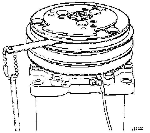 8. Check that the original clutch shims are in place on the compressor shaft and replace the compressor shaft key.